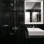 욕조, 샤워가 멋진 분위기를 만듭니다.
